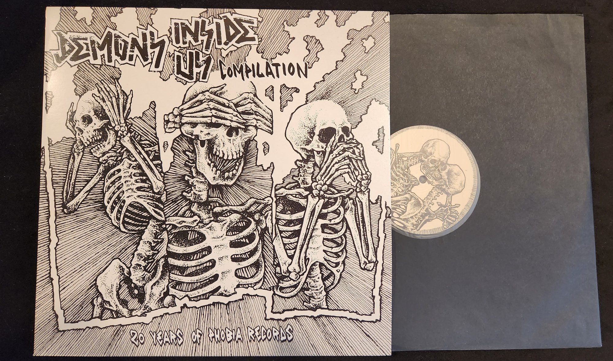 21 bands with 21 songs, lets celebrate 20 years of Phobia Records with this massive release. 28 pages booklet, A2 poster, sticker. Artwork from Stivart and Robin Wiberg. Bands: Myteri, War//Plague, Svaveldioxid, Warcollapse, Paranoid, Fear Of Extinction, Earth Crust Displacement, Apparätus, Scared Earth, Ursut, Crutches, Voidfiller, Absolut, Verdict, Utsatt, Slutet, Chornobyl, Dissekerad, Parasit, Makabert Fynd and Disease. Unreleased songs etc.